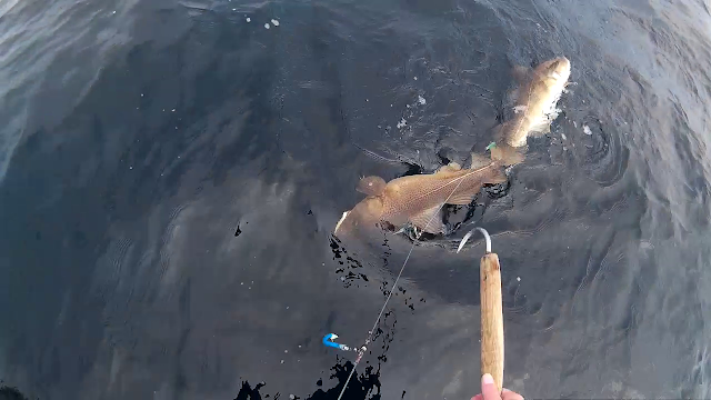 Ich habe heute ohne Beifänger geangelt und nur einen grünen 200gr Pilker benutzt. Mich verwundert das etwas, da Grün eher selten bei uns zum Einsatz kam.